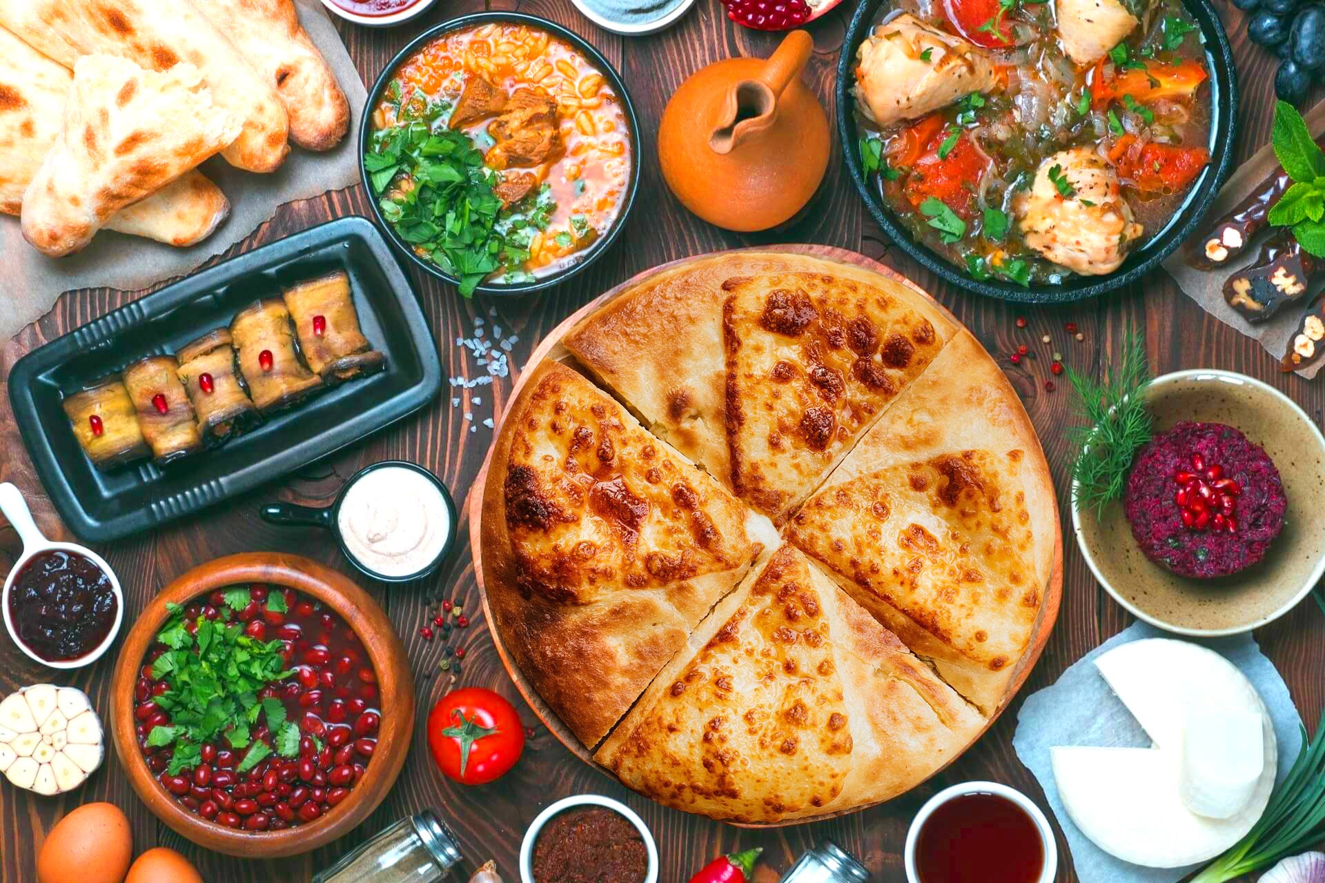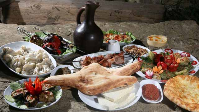 Уникальную грузинскую кухню никто не забывает. Рожденные в ландшафте, богатом аллювиальными минералами, смытыми с гор, овощи, фрукты, мясо и сыры породили очень индивидуальную культуру питания. Многое по-прежнему остается органическим, а ингредиенты разнообразной грузинской кухни выигрывают от мягкого климата, обеспечивающего свежие овощи три четверти года. Многочисленные ароматные дикорастущие травы придают блюдам особый и неповторимый аромат. Каждая часть Грузии имеет свою уникальную кухню со своим особым колоритом. Грузинская национальная кухня отличается обилием разнообразных блюд (разные виды мяса, рыбы и овощей, несколько сортов сыра, соленья). Среди этих очень часто подаваемых блюд: жареный поросенок, говядина и курица, приготовленные на гриле или запеченные в различных соусах, хачапури, состоящий из слоев лепешки, чередующихся с плавящимся сыром; Ткемали – несколько видов восхитительных кислых сливовых соусов, рожденных популярным в Грузии деревом ткемали; Бадже - насыщенный чесночный соус со сливками из грецких орехов, пхали, общий термин для многочисленных овощных паштетов, приготовленных из молотых грецких орехов, хинкали, знаменитые котлеты из теста с начинкой из мяса, сациви, курица в соусе из грецких орехов, мцвади, мясо, приготовленное на гриле до совершенства на виноградной лозе - дрова, аджика, чертова острая, чурчхела – лещина и грецкие орехи, сваренные вместе в загустевшем винном соусе. Все они имеют свои вкусы, изысканные и усиленные уникальным выбором грузинских белых и красных вин. В грузинской кухне используются очень распространенные продукты, но из-за различных пропорций обязательных ингредиентов, таких как грецкий орех, ароматические травы, чеснок, уксус, красный перец,