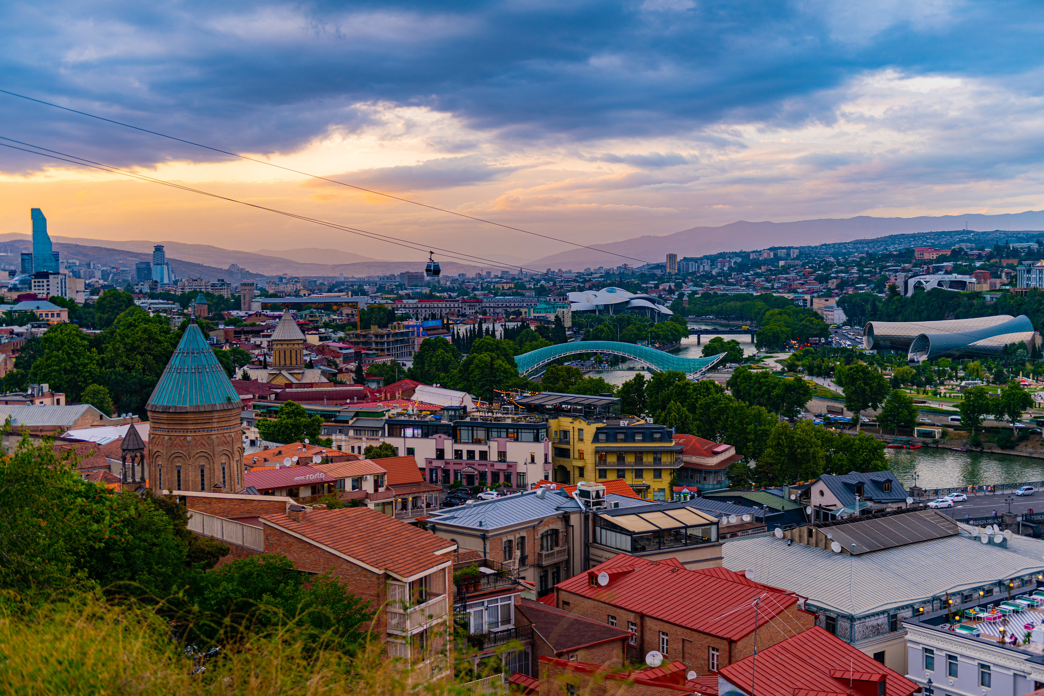 В 2008 году Тбилиси отметил свое 1550-летие. Это значит, что история этого удивительного города уходит далеко в V век, когда грузинский царь Вахтанг Горгасали приказал построить город в центре благодатной долины, уютно расположившейся между двумя Кавказскими хребтами. Название города было не случайным. Оно произошло от слова «тбили» — тепло. Ведь равнина между горой Сололаки и скалой Метехи, где расположен город, богата теплыми серными источниками. С возникновением города связана красивая легенда. Рассказывают, что Вахтанг Горгасали и его свита охотились в густых лесах. Вдруг они увидели фазана. Царь послал своего сокола, чтобы поймать ее, но обе птицы исчезли. После долгих поисков птиц нашли сваренными в бьющем из-под земли горячем источнике. Однако некоторые историки утверждают, что до Горгасали на месте Тбилиси стоял город-крепость, куда в IV веке из древней Мцхеты была перенесена столица страны. Как бы то ни было, в средние века Тбилиси (бывший Тифлис) был хорошо известен и на востоке, и на западе, потому что Грузия стала центром торговли, стоя на перекрестке дорог, ведущих в арабские страны, в Россию, в Византию и Индию. Ремесленники Тбилиси слыли искуснейшими, особенно преуспевшими в оружейном и ювелирном деле. Именно тогда родился известный афоризм: «Ключ от Кавказа в Тбилиси». Однако такое выгодное положение стало причиной непрекращающихся войн: Тбилиси десятки раз сжигали и разрушали, но каждый раз возрождали из пепла. В средние века Тбилиси был процветающим городом. Это был дом замечательных поэтов, таких как гениальный Шота Руставели и многих других. Зарубежные поэты также вдохновлялись этим прекрасным городом. Пушкин, глубоко впечатленный радушным приемом, оказанным ему в Тбилиси, назвал город «Сказочной землей». Здесь Лермонтов написал свои знаменитые «Мцыри», Грибоедов — «Горе от ума», Толстой — «Детство», Горький — «Макар Чудра» и т. д. Все это объясняется поэтическим духом города и неповторимой аурой. Сочетание оригинальной архитектуры и природной красоты придает ему неповторимый шарм и колорит. Тбилиси раскинулся узкой полосой по обоим берегам Куры. Его узкие изогнутые улочки поднимаются по склонам и огибают горные хребты. Соответствующие рельефу дома расположены на склонах гор, расположенными террасами друг над другом, вплотную примыкающими друг к другу. Если вы посмотрите на город с горы Мцатминда, вы ясно увидите, как они взбираются по склонам холмов на обоих берегах и группируются у скалистых обрывов. С начала 19 века значительно разрослась центральная часть современного Тбилиси, выстроенная в виде прямоугольных кварталов — Новый город. В современном городе гармонично сочетаются черты античности и современности: храмы 6-7 вв. стоят рядом с современными многоэтажками, широкими проспектами, садами, бульварами; великолепные мосты соединяют правый и левый берега быстрой Куры. Но душа Тбилиси по-прежнему живет в Старом городе. Тихие извилистые солнечные улочки, увитые виноградной лозой террасы домов, старинные церкви с черепичными куполами, руины старых монастырей, традиционные грузинские дворики с замысловатыми резными крыльцами просто неотразимы. Частичка вашей души навсегда останется в этом очаровательном уголке в обмен на маленький кусочек Тбилиси, который вы увезете с собой...